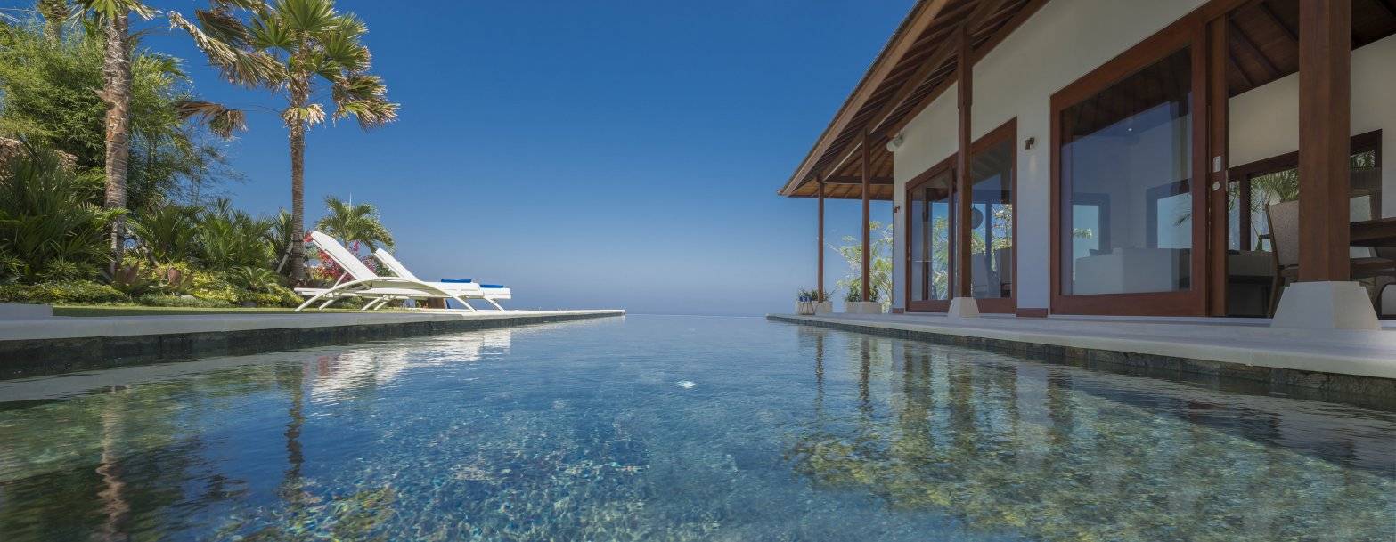 Far removed from mainstream tourism, the splendid Villa 3245 is blessed with one of the most spectacular coastline views in all of Bali. Resting upon a hillside, 100 metres from the seashore, and overlooking the beautiful Labuan Amuk Bay near Candidasa, the contemporary architecture, four bedrooms, wide choice of indoor and outdoor living and dining areas, broad balconies, a well-equipped gym, spellbinding sea views and an 18-metre swimming pool make this holiday home ideal for families and groups of friends of all ages. Its terraces and velvety lawns, meanwhile, set the stage for the perfect outdoor wedding.