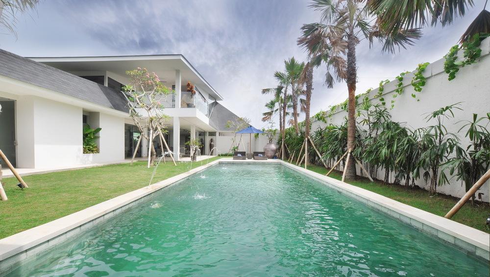 Inspired by colonial architecture of the modern era, Villa 3888 is the ultimate holiday villa in the pulsating heart of Seminyak, only a short walk from the famous Seminyak Beach. Exuding relaxed luxury, this double-pavilion tropical pool villa features five bedrooms, two living rooms, four bathrooms, an expansive courtyard with an outdoor pool surrounded by lush greenery and a spacious dining room. Showcasing contemporary design, the interior decor employs hardwood timber panels with marble flooring, complemented by stylish furnishing. Highlighting the double-storey pavilion is the traditional Balinese thatched roof on the second floor, blending harmoniously with the dazzling white bedroom interior.