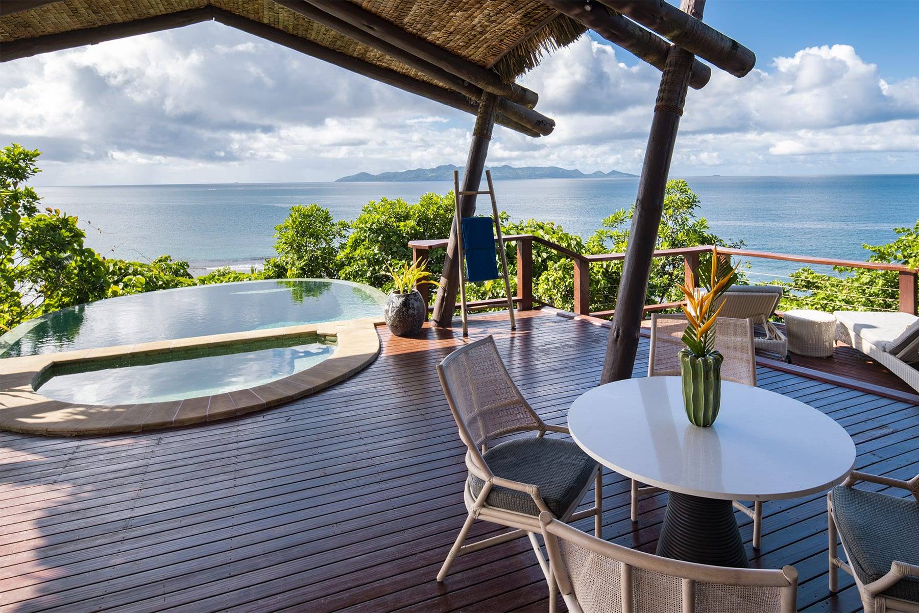 You will not only enjoy luxurious living over an omnipresent ocean when you relax on the spacious terrace ranging across several levels over the lagoon but also when you have a bath in the hot tub or in the large private pool, which has been carved directly into the rocks of the shore, and last but not least while enjoying a romantic Sundowner cocktail or during a private dinner.