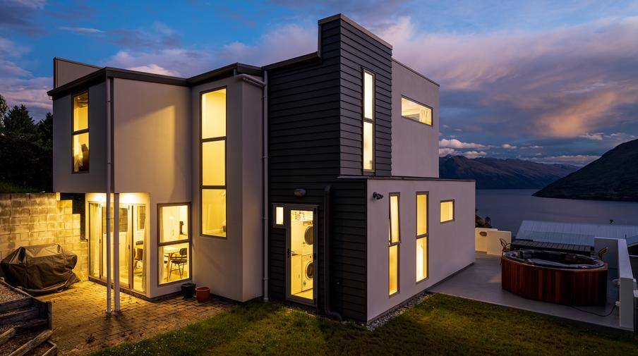 This private luxury four bedroom villa has majestic views over to Lake Wakatipu and the snow-capped Remarkables. Within minutes from the bustling Queenstown shops