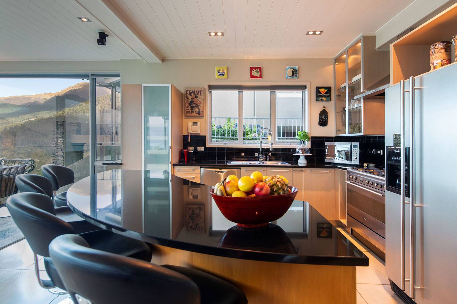Featuring an open plan kitchen, living and dining area with glass sliding doors opening to a spacious deck showcasing the views in which Queenstown is famous. Ducted heating and a gas fire create a warming ambience and ensure you are cosy on the coldest of winter days, while air-conditioning keeps you cool on hot summer days.
