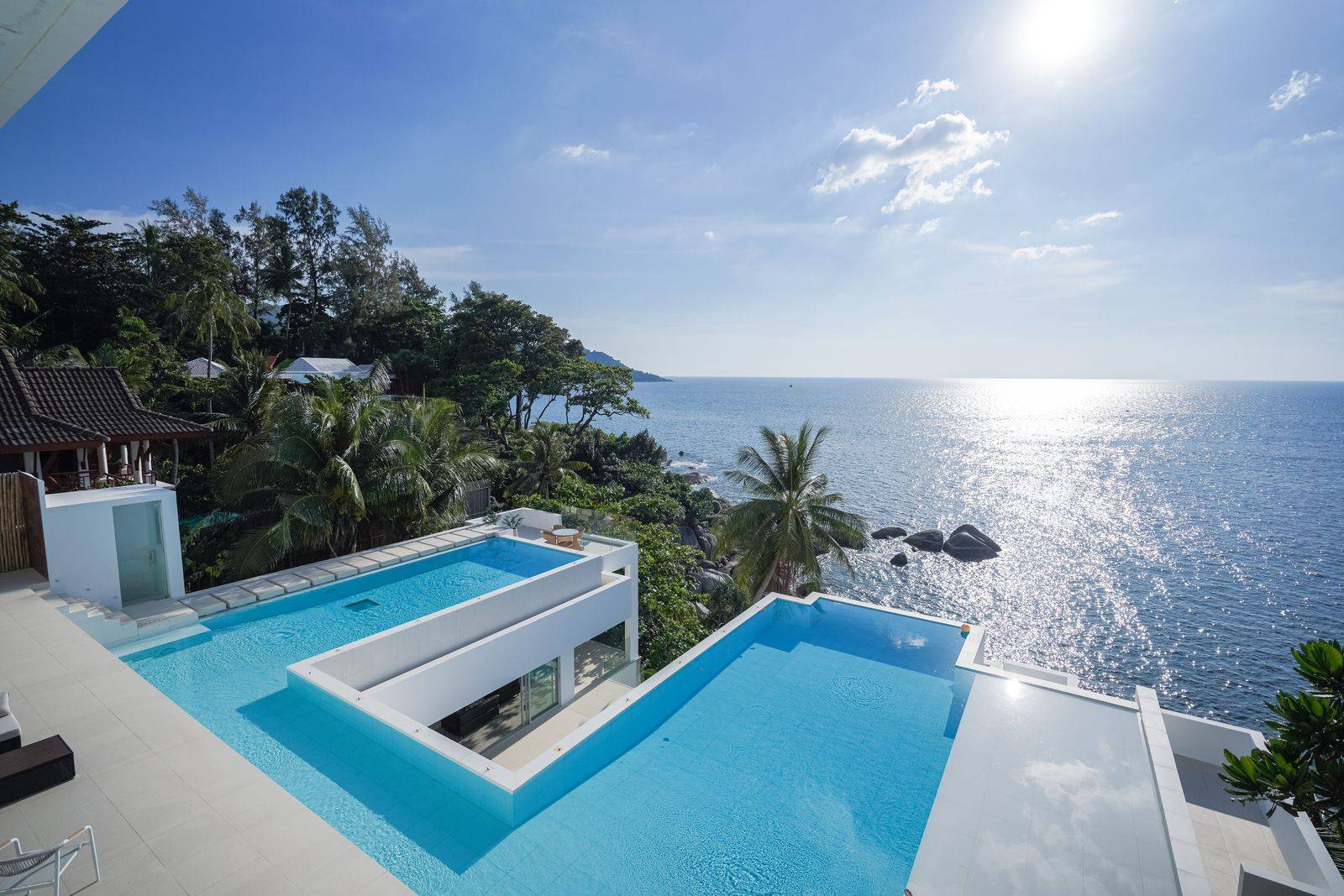 Baan Benjamart Villa in Koh Samui is a contemporary 4-bedroom villa situated right on Bophut beach, boasting a tropical elegance that flows right through its comfortable living spaces, making the most of its stunning and private location. You'll find well-planned interiors and layout combining luxury and practicality - with the focal points being the beachside pool and al fresco sala, whilst the spacious guest rooms are set back from the communal areas allowing for privacy and tranquility. Choose from a twin bed guest room which offers an en-suite bathroom, ideal for older children or another three bedrooms suite situated directly opposite in two large, stilted pavilions built into the cliffside, surrounded by tropical foliage.