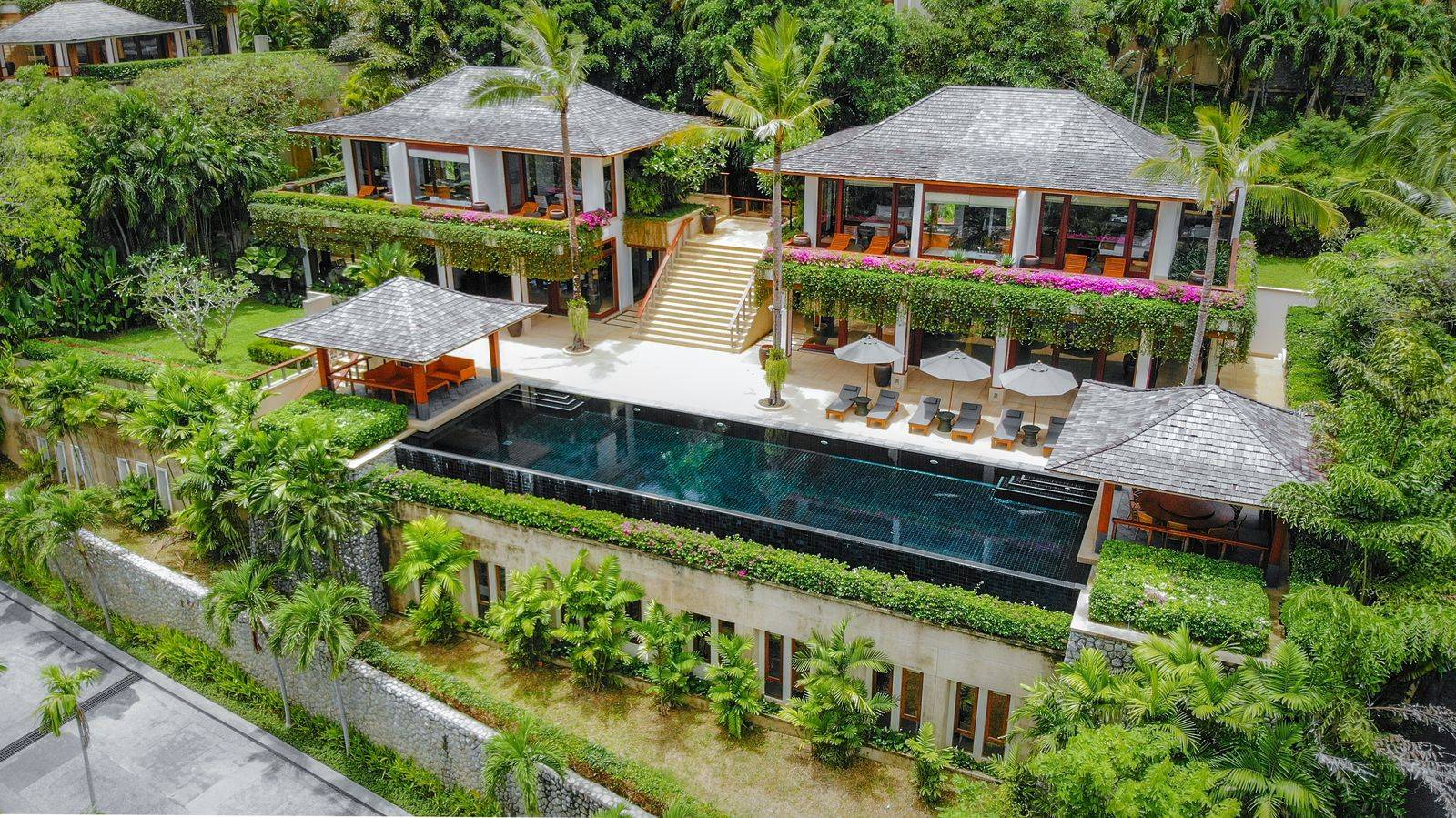 The architecture maximises space and natural light, with a large central living space bordered by windows on three sides that opens the area up to the garden, and a huge column-less verandah and pool deck.